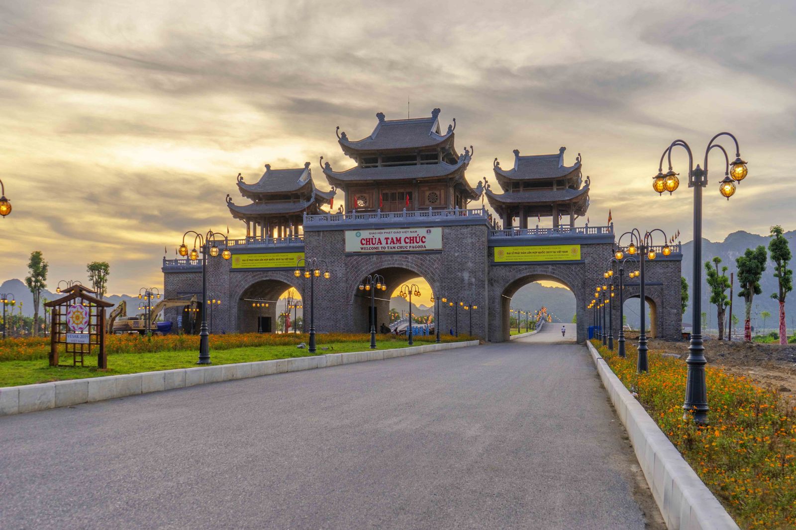 Để đến du lịch chùa Tam Chúc, bạn sẽ cần đi qua cổng Tam Quan. Có 2 cổng là: Tam Quan Ngoại và Tam Quan Nội, được xây dựng vô cùng đồ sộ, kiên cố và có hoa văn đặc sắc. Ấn tượng hơn cả phải kể đến Cổng Tam Quan Nội được xây dựng chủ yếu bằng gỗ tạo cảm giác thân thiện, dễ chịu vô cùng. Những chiếc cổng này có giá trị như bức tường thành bảo vệ quần thể chùa Tam Chúc và mang đến vẻ đẹp bắt mắt.