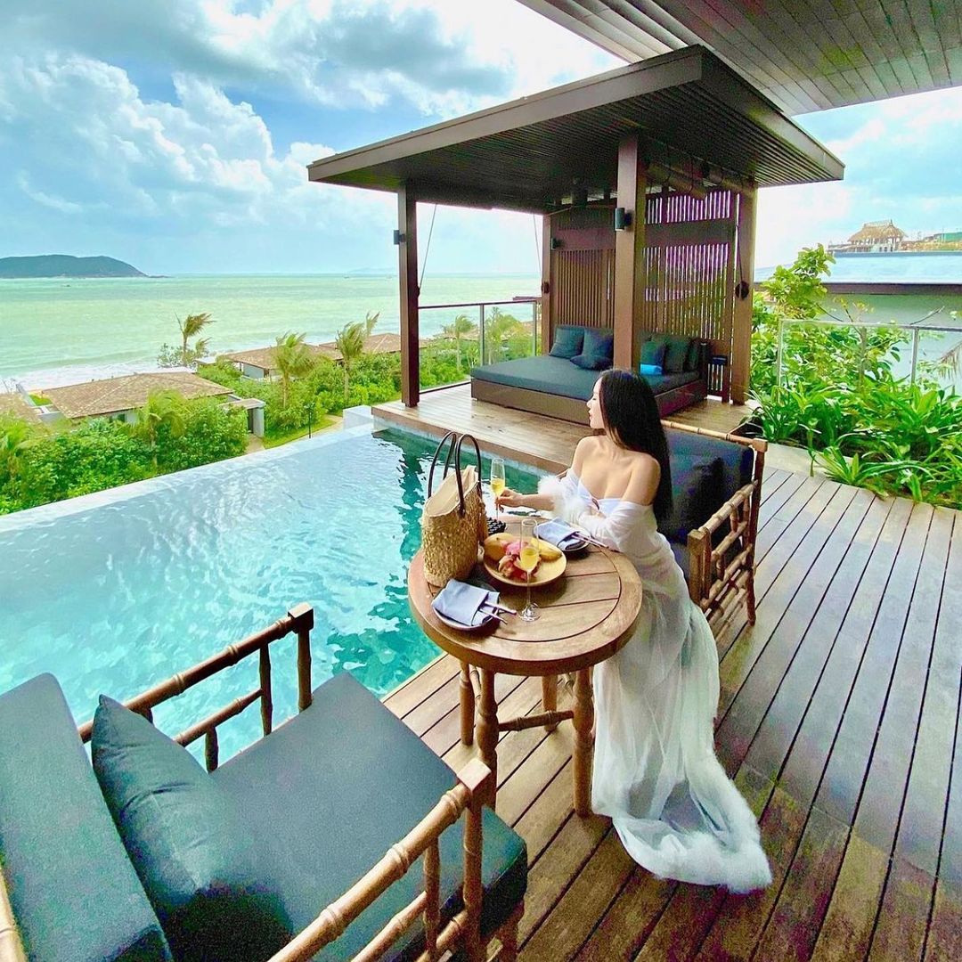 Cùng với đó, lưu trú tại đây bạn sẽ được trải nghiệm các dịch vụ đẳng cấp như: Dịch vụ quản gia riêng, thưởng thức rượu vang thượng hạng được chọn lọc trên từ các thương hiệu nổi tiếng thế giới trong từng villa, thưởng thức các món ăn ngon từ hải sản được đánh bắt trong ngày, các món ăn thuần Việt...