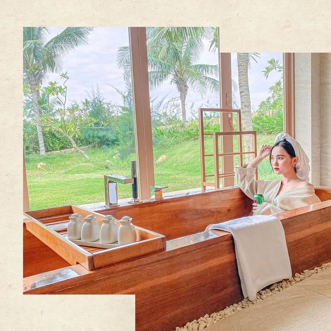 Đặc biệt, cách bài trí của các vật dụng trang trí đều mang đậm nét ngôi nhà gỗ ở làng chài và “mỗi căn phòng là một câu chuyện riêng”. Tuy đơn giản, mộc mạc nhưng Maria Bãi Xếp đem đến một không gian thoáng đãng, trẻ trung và sang trọng, tạo nên cảm giác rất nghệ thuật. Khung cửa tròn ở phòng cũng như khu vực bồn tắm với cửa kính độc đáo chính là điểm nhấn khiến resort trở nên hấp dẫn hơn trên các trang mạng xã hội.