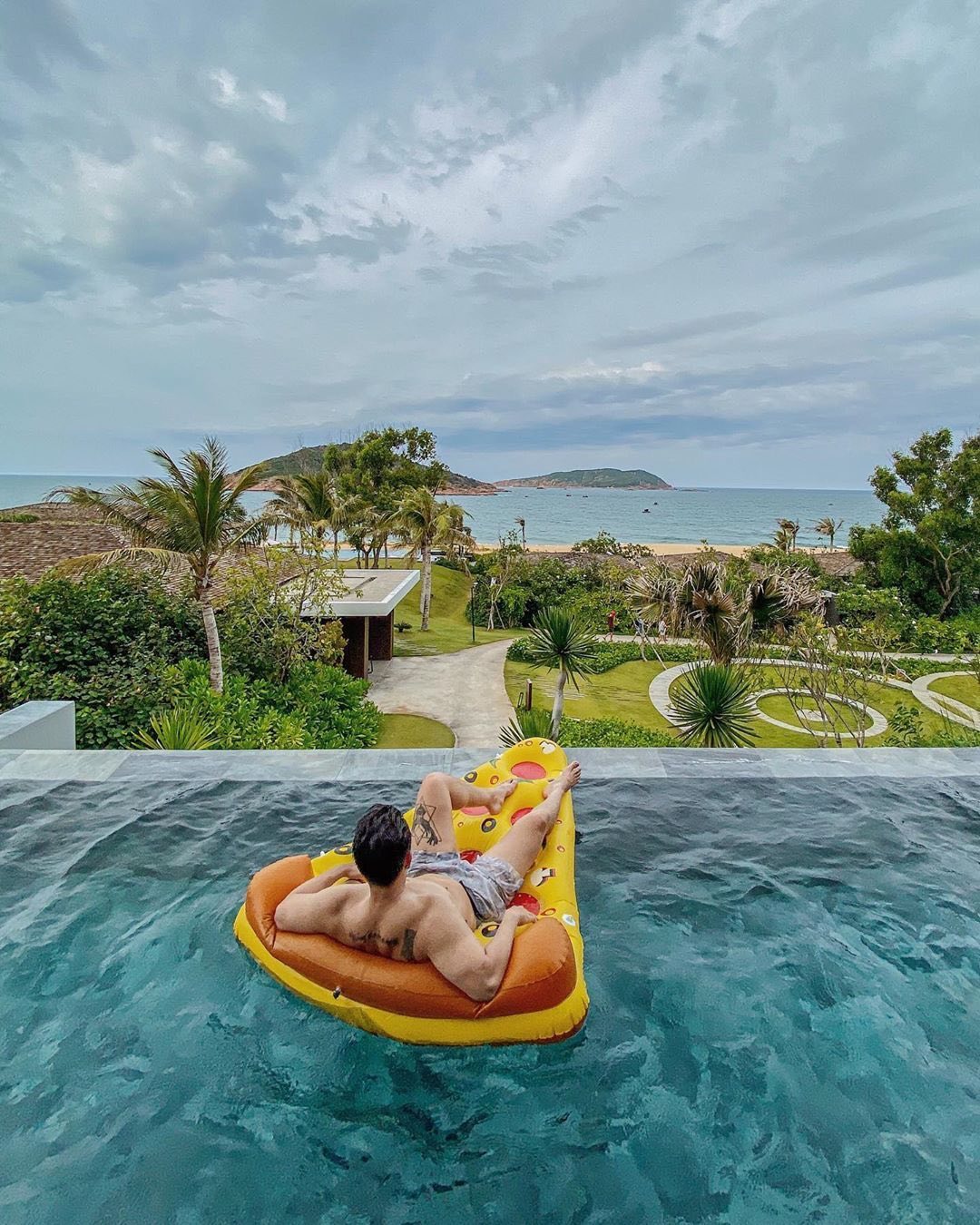 Điều hấp dẫn nhất của khu resort này là tọa lạc ngay tại Eo Gió - nơi được mệnh danh là điểm ngắm hoàng hôn đẹp nhất Việt Nam. Đến đây chẳng có gì khó để bắt được những khoảnh khắc vô cùng tuyệt đẹp.