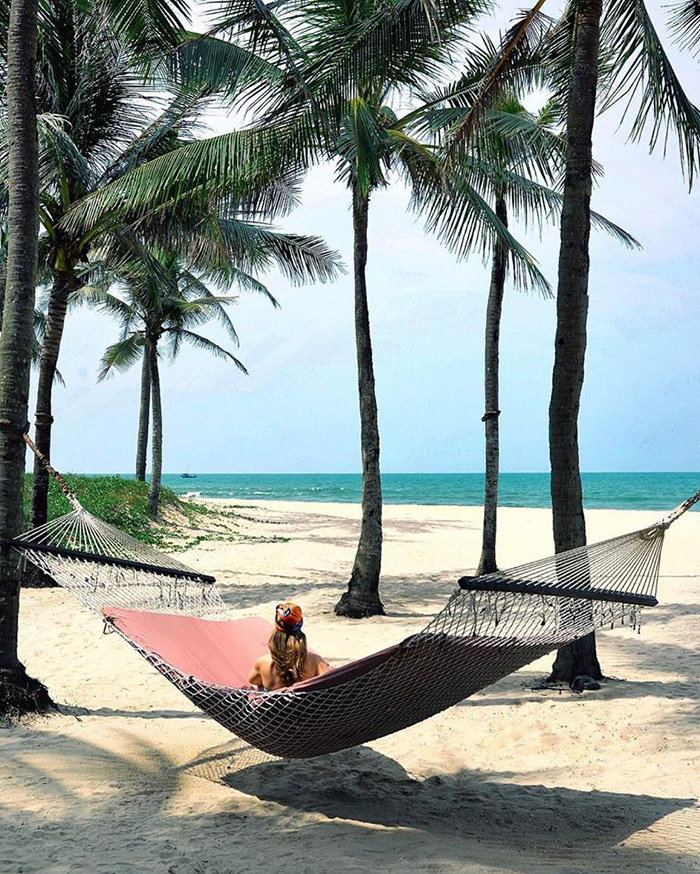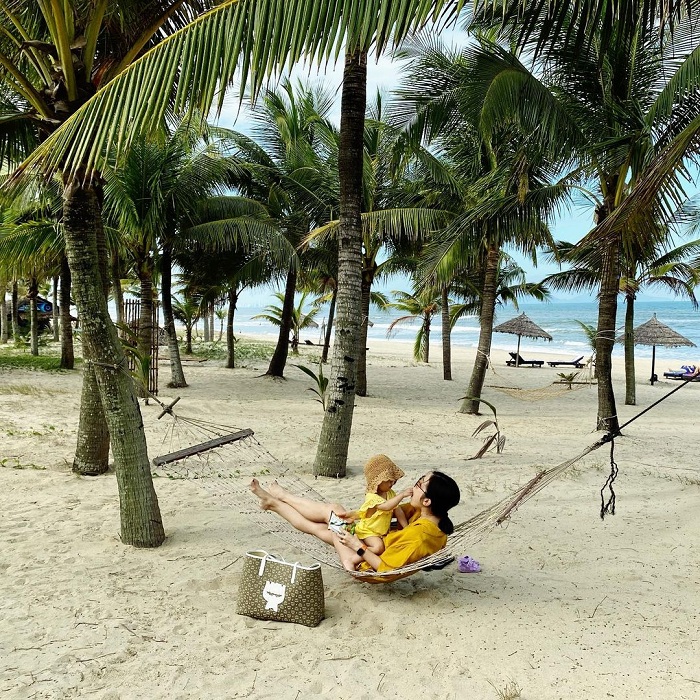 Đến Hà My, bạn đừng bỏ lỡ trải nghiệm đi dạo hay ngồi nghỉ trên bãi biển, dưới những tán dừa mát mẻ để chiêm ngưỡng trọn vẹn khung cảnh ở đây. Một trong những điểm khiến Hà My trở nên cuốn hút hơn so với những bãi biển khác chính là việc bạn không phải ngộp thở chen chúc giữa dòng người đông đúc mà thay vào đó, chúng ta có thể thảnh thơi rong chơi.