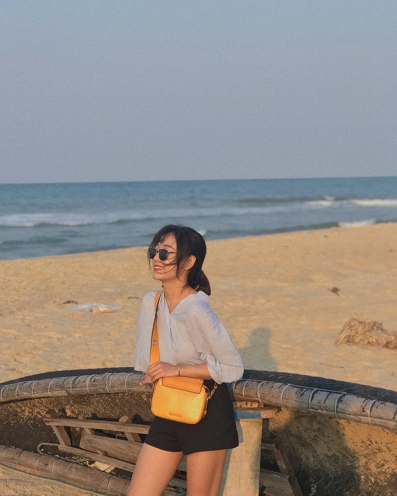 Nói mẹ thiên nhiên ưu ái cho Hà My quả không sai. Vùng biển này vẫn giữ nguyên được nét nguyên sơ, hòa lẫn với vẻ đằm thắm và hùng vĩ của núi non. Khung cảnh ấy của Hà My nổi bật hơn bao giờ hết với hàng dương, rặng dừa hay vạt rau muống biển lan dài đang vào mùa nên trổ rất nhiều bông hoa màu tím. Xa xa ngoài biển khơi là chiếc thúng chài nằm dập dềnh theo nhịp sóng vỗ. Đứng ở đây, bạn có thể phóng tầm mắt của mình ra xa xa với cù lao Chàm. Nghĩ tới cảm giác được tận hưởng khí trời ngoài biển, cùng người thân chụp những bức ảnh “sống ảo” thì còn gì bằng.