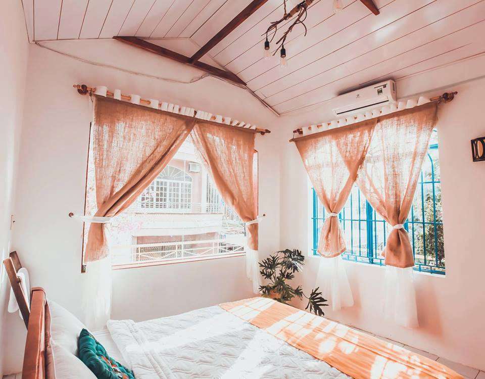 Nếu không gian phòng khách chỉ trang trí đơn giản mà quá đỗi xinh xắn với chiếc lều vải phủ ánh đèn led lung linh cùng chiếc ghế lười hạt xốp ngả lưng êm ái thì mỗi phòng ngủ riêng biệt ở Homie được sắp đặt vô cùng tinh tế theo nhiều phong cách đặc trưng khác nhau. Bạn có thể chọn căn phòng Master với chiếc giường Queen rộng rãi vô cùng thoải mái hay căn phòng thoáng đãng với những ô cửa kính đón ánh sáng tự nhiên mỗi sáng, để mỗi thì giờ ở Homie là một khoảnh khắc an nhiên trong lành, cùng lắng nghe tiếng hòa ca của đất trời gió mây quyện hòa.