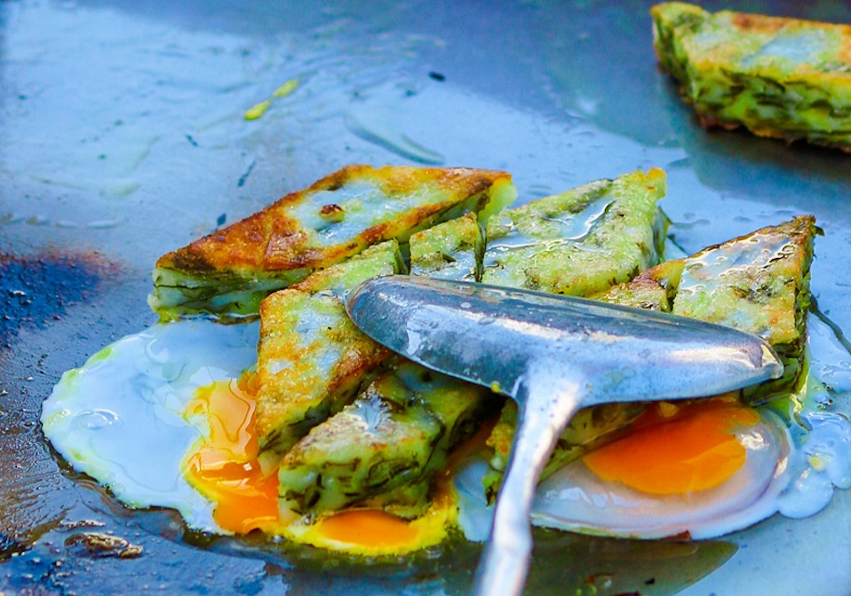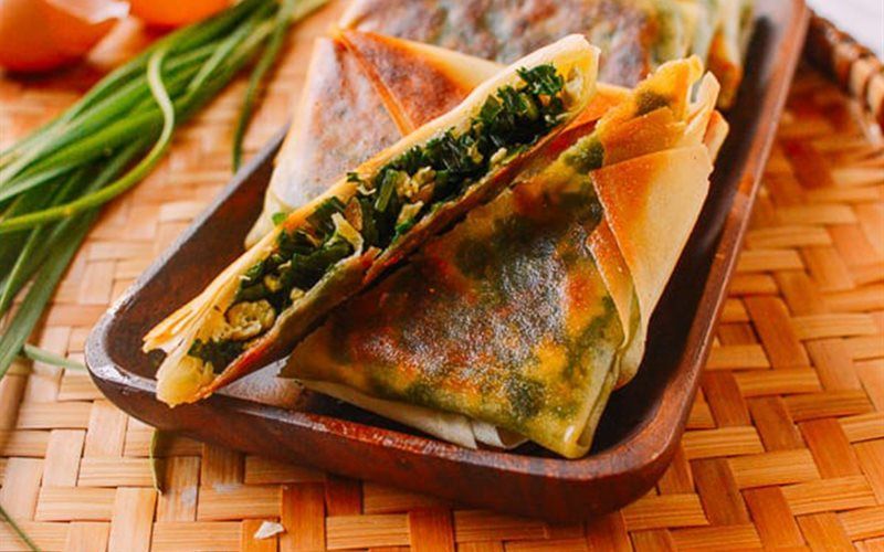 Khi hột gà vừa chiên chín, người ta lấy ra cho vào đĩa, sau đó gắp từng miếng bánh hẹ đặt lên tạo thành đĩa bánh thật lạ mắt và vô cùng hấp dẫn, chỉ nhìn thôi đã thấy ngon rồi. Thực khách nên ăn bánh hẹ vào lúc còn nóng hổi mới cảm nhận được mùi vị thơm ngon, vừa béo vừa bùi rất đặc trưng. Bánh hẹ mà được chấm nước tương pha giấm ớt kèm với xà lách, cải bẹ xanh và rau thơm thì ngon không còn gì để bàn. Đây là loại bánh ăn chơi vui miệng chứ ít ai ăn thay cơm.