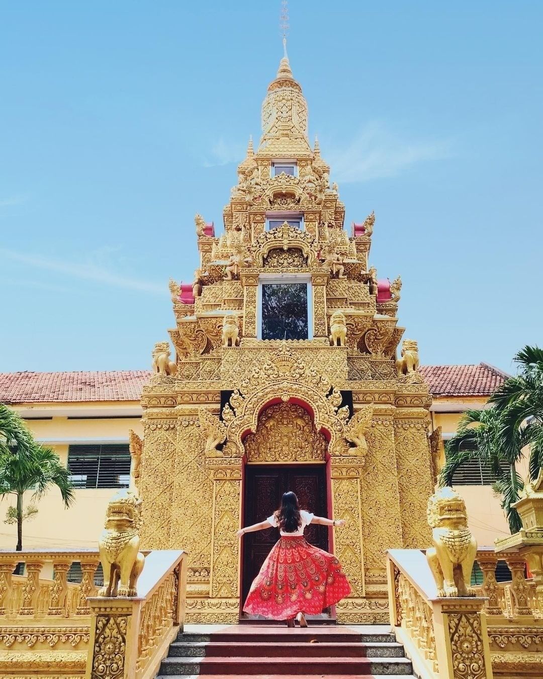 Nằm nổi bật giữa cánh đồng bao la bạt ngàn với con đường uốn lượn quanh co, công trình được ví như chiếc “cổng trời” này sẽ đưa bạn đến với vùng đất Tri Tôn. Cổng được thiết kế với những chi tiết hoa văn đắp nổi tinh xảo, thể hiện rõ nét văn hóa đậm chất Khmer chỉ có ở miền đất nơi đây. Nhìn từ xa cũng vô cùng nổi bật, chính vì thế cổng trời trở thành địa điểm du lịch ở Tri Tôn được nhiều người yêu thích.