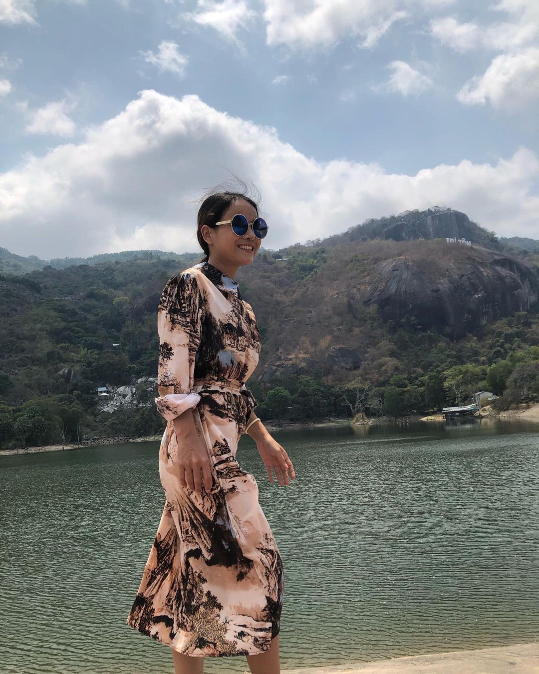 Cạnh hồ nước yên bình ấy, là dãy núi Tà Pạ với vẻ đẹp uy nghi. Khung cảnh yên bình với núi, rừng, mây, cây cỏ và ánh nắng, xa xa là ngôi chùa nổi bật với lối kiến trúc của người Khmer. Được biết để xây dựng ngôi chùa đặc biệt này, người dân phải sử dụng một loại đá granit tông màu vàng làm chủ đạo. Du khách từ xa cũng có thể quan sát thấy vì màu sắc rất nổi bật.