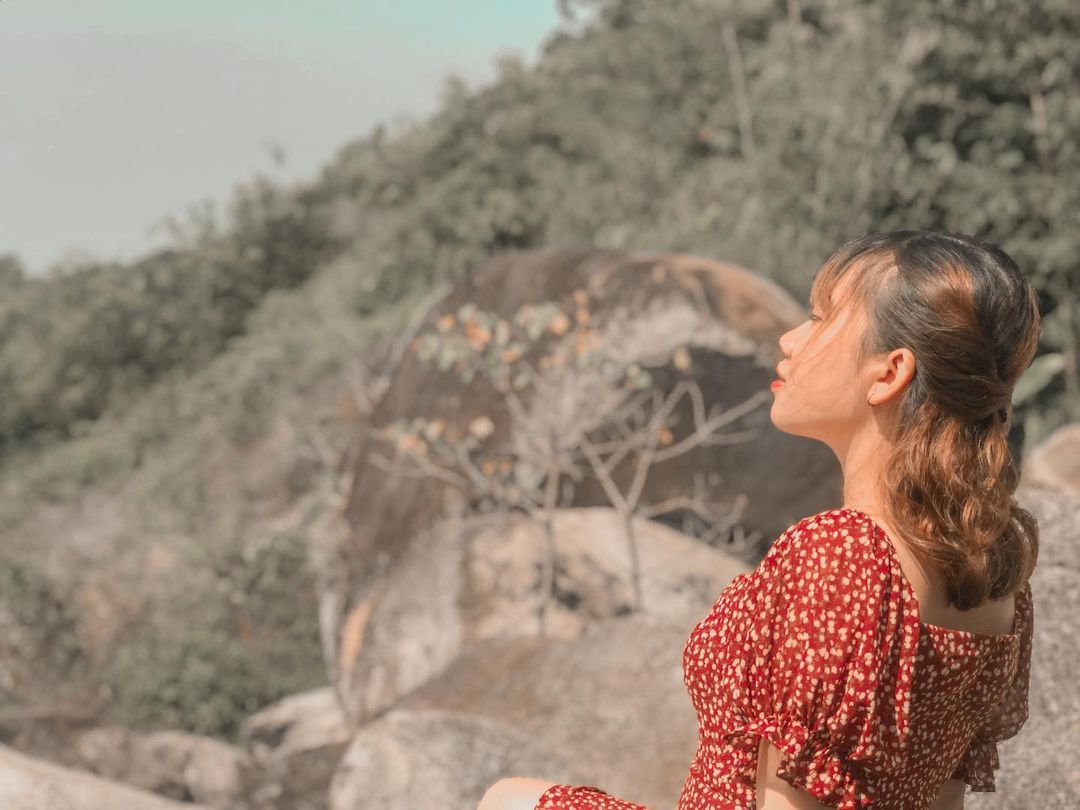 Du khách cũng đừng quên đặt chân lên tảng đá đầu voi. Nếu đứng ở tảng đá này, chúng ta có thể nhìn ngắm rõ toàn cảnh xung quanh núi.