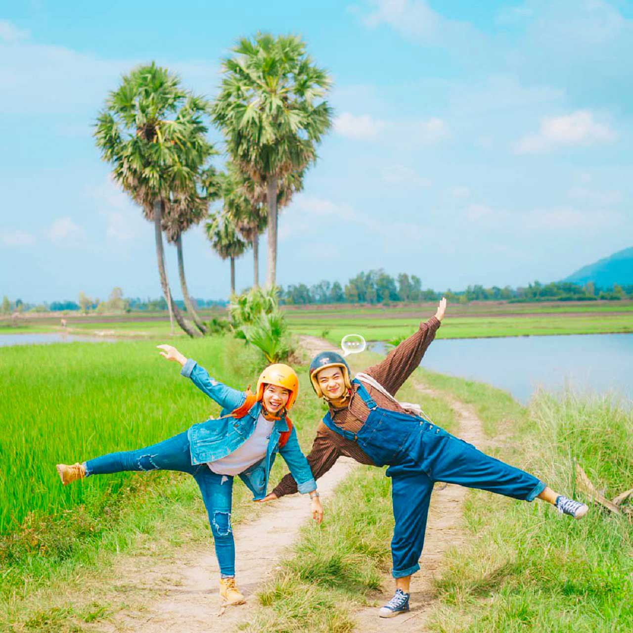 Nghĩ tới cảm giác được cùng lũ bạn đi giữa những cánh đồng mát mẻ, xen kẽ cây thốt nốt ở đây thôi là đã thấy vui lắm rồi.