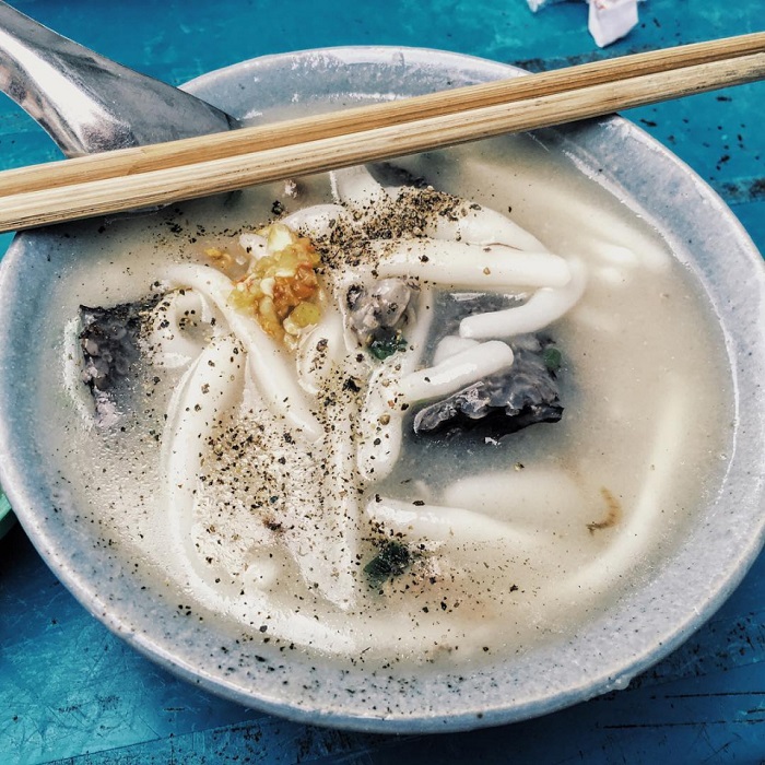 Đặc sản Bến Tre có rất nhiều món ăn độc lạ, cái tên "bánh canh bột sắt" chắc chắn sẽ khiến rất nhiều bạn tò mò đúng không nào? Đây là một món ăn vô cùng bình dị được làm từ bột gạo nhào thành từng khối theo công thức gia truyền. Sau đó người chế biến sẽ dùng dao để xắt (cắt) thành sợi vừa ăn, bởi vậy mà cái tên bánh canh bột xắt được ra đời.