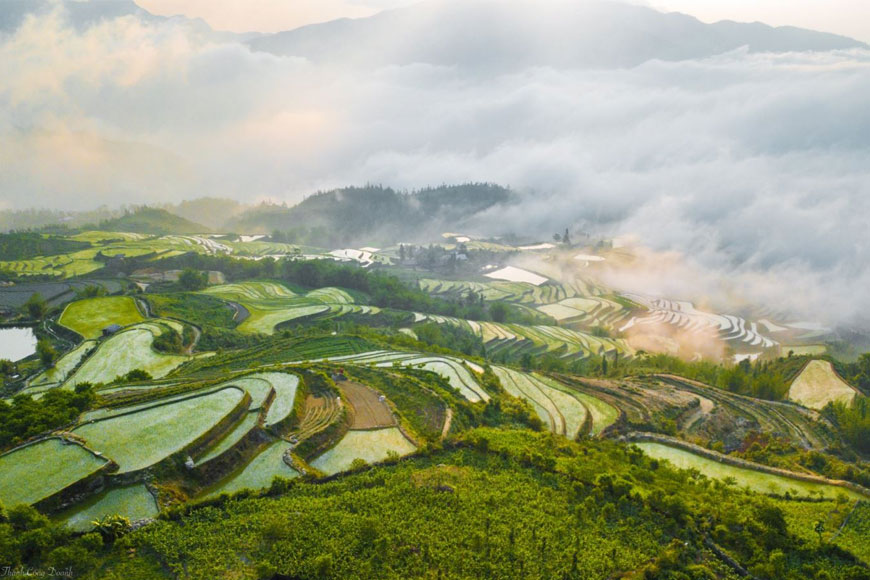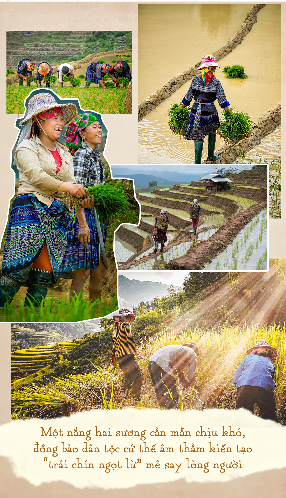 Nếu bạn chưa biết, hình ảnh ruộng bậc thang gắn liền với sức mạnh tập thể cùng bản tính khai khẩn chịu khó của đồng bào người dân tộc nơi đây. Mọi thứ vô tình tạo nên kiệt tác nghệ thuật kỳ vỹ giữa núi rừng đại ngàn, men theo những vách núi quanh co hiểm trở còn có lớp phù sa màu mỡ, đem lại nguồn nước tưới xanh ngát cho thửa ruộng. Không phải tự nhiên ruộng bậc thang ở đây đẹp đến thế, nếu không có bàn tay kiến tạo khéo léo của con người.