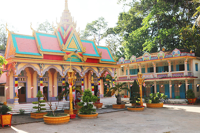 Bạn có thể di chuyển đến khu vực chính điện để cầu bình an cho người thân, gia đình và tiện cho việc khám phá từng nét đẹp của công trình kiến trúc này. Việc chụp ảnh check - in tại đây là hoạt động mà bạn không nên bỏ qua. Thêm một điểm cộng nữa là đồng bào Khmer ở đây vô cùng thân thiện với du khách.