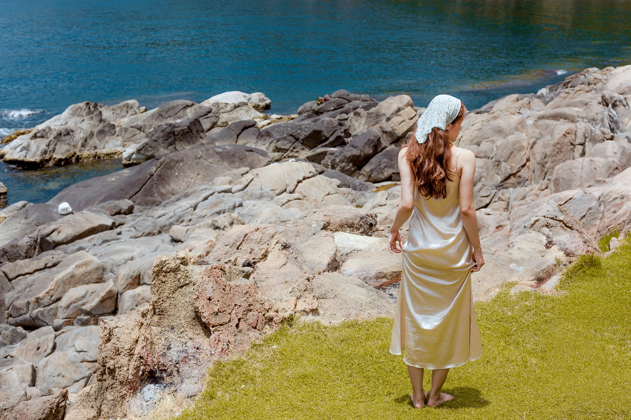 Nếu những bãi biển đẹp ở Đà Nẵng khác sở hữu bờ cát trắng mịn, phẳng phiu thì Bãi Yên Ngựa lại thu hút du khách bởi vách đá cao, mỏm đá sắc nhọn ôm lấy bờ cỏ xanh mướt.Đây là nơi sẽ giúp bạn có những chiếc ảnh cực thơ bởi background cứ gọi là xinh – xịn – mịn. Khi kết hợp view Bãi Yên Ngựa với những bộ cánh nhẹ nhàng đậm chất thơ là bạn có thể tung tăng thả dáng tại đây rồi.