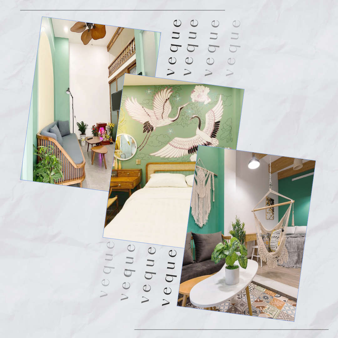 Veque Homestay sở hữu nhiều phòng, nhiều căn với diện tích, bày trí, nội thất khác nhau nên khách hàng có đa dạng sự lựa chọn. Dù là không gian nào cũng được decor rất ngăn nắp, đơn giản mà tinh tế và rất tiện nghi.