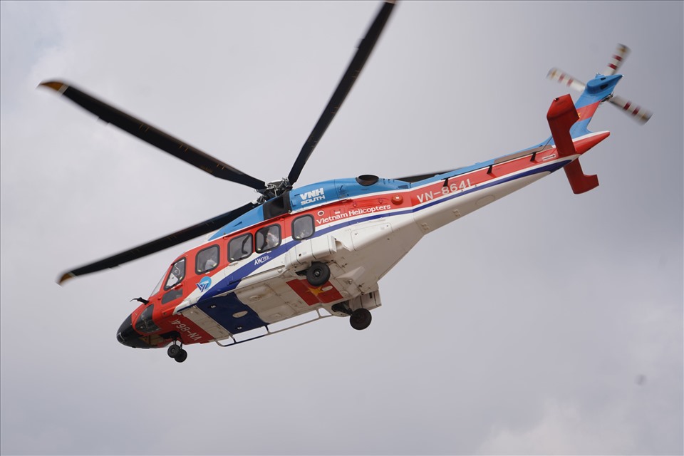 Trực thăng AW-189 (Leonardo Helicopters, Ý), 16 ghế, tầm bay tối đa 907 km, trọng lượng cất cánh 8.600 kg, có điều hòa.