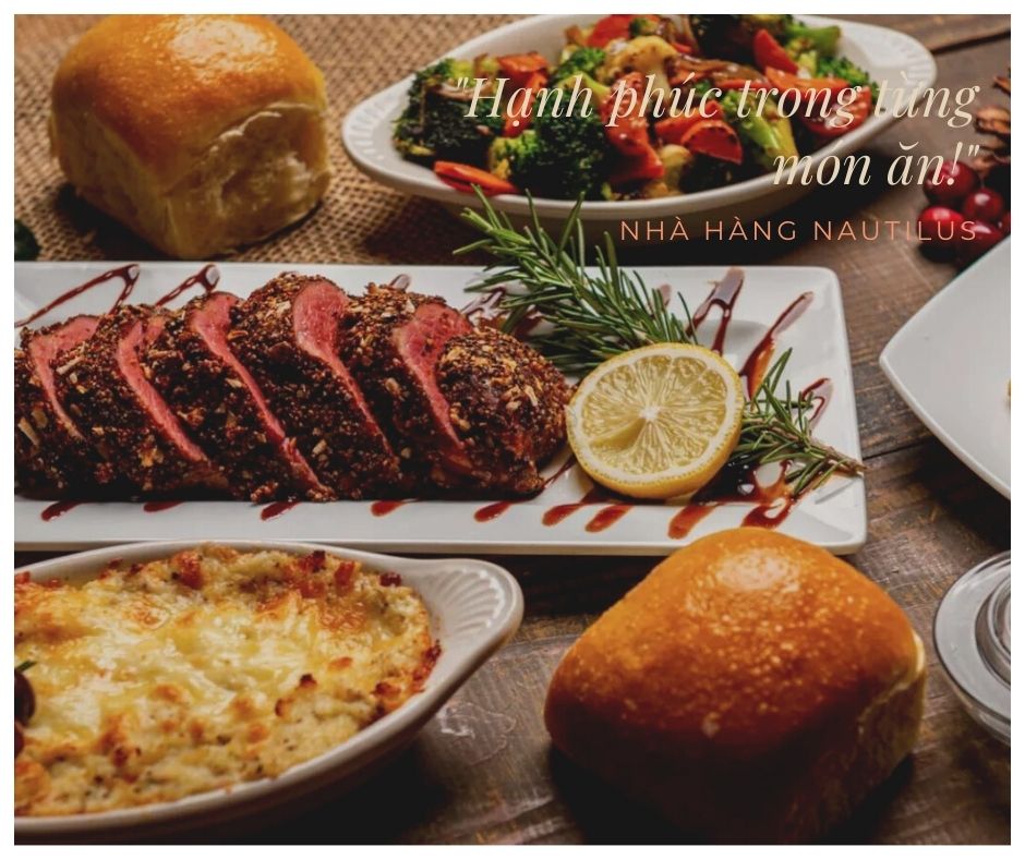 Sở hữu cho thực đơn khá phong phú trải dài từ tinh hoa ẩm thực Việt Nam với phở Thìn, bún bò Huế, súp lươn xứ Nghệ, bánh canh Nam bộ, hay cho đến các món ăn hảo hạng của trời Âu như thịt cừu hun khói, mì Ý, pizza,… Nautilus có toàn bộ những gì bạn cần có.