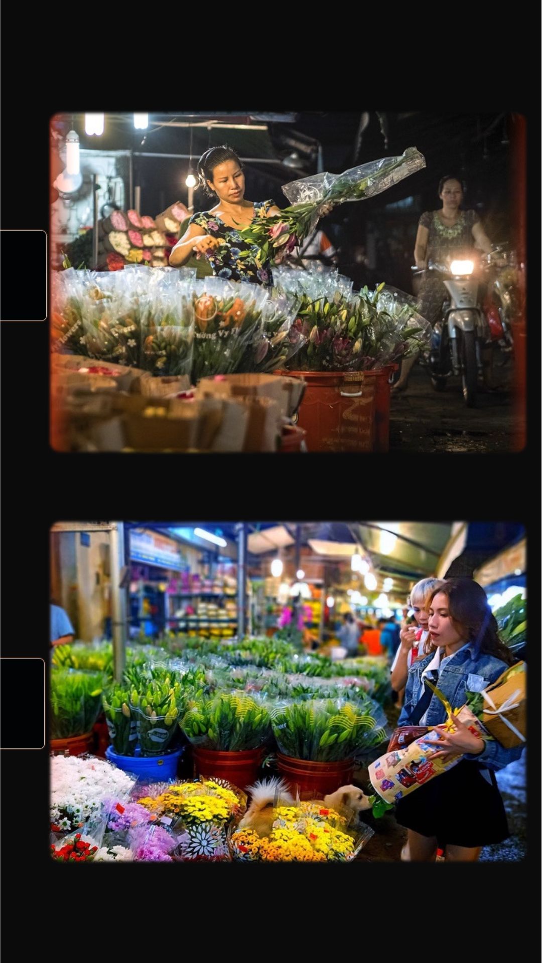 Hoặc nếu không, hãy thong thả chọn cho mình vài nhành hoa tươi thắm dành tặng người thân, gửi gắm chút tâm tình ngọt ngào của một ngày mới. Từ 3 – 6 giờ sáng là thời điểm nhộn nhịp nhất của chợ hoa Hồ Thị Kỷ, khi những thanh âm người mua kẻ bán huyên náo, vang vọng cả khu chợ. Thêm một điểm nhấn nữa, ngoài ngắm hoa tươi, hay check - in chụp ảnh hóa nàng thơ, bạn còn được đặt chân đến thiên đường ẩm thực đa dạng với đủ món ăn vặt khoái khẩu nữa đấy.