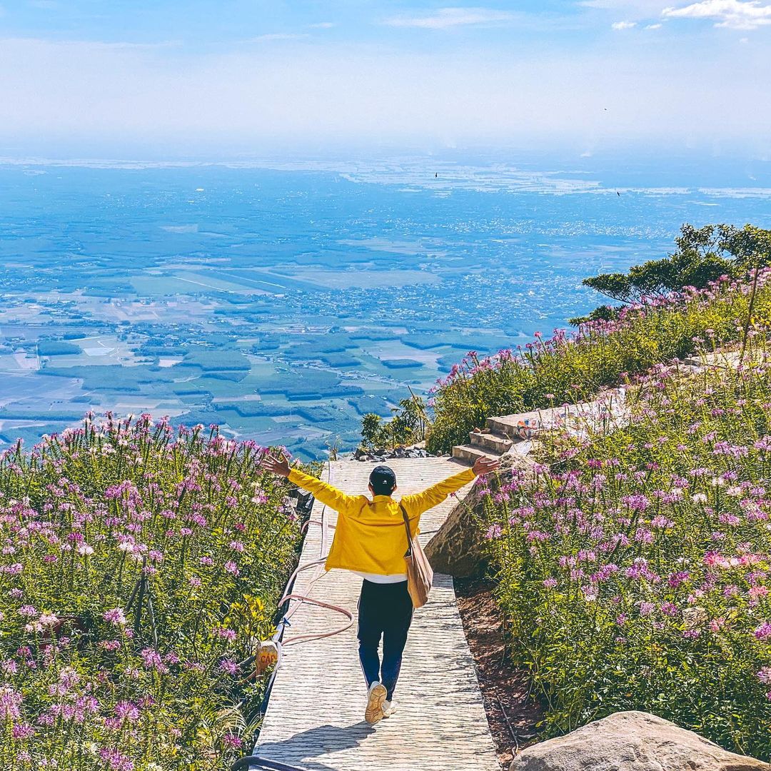 Nếu bạn thuộc team thích trải nghiệm thì lựa chọn đi bộ leo lên các bậc thang lên đến đỉnh núi là hoạt động không thể bỏ qua. Còn gì tuyệt vời hơn cảm giác được từ từ cảm nhận những kiến trúc đặc biệt, ngắm nhìn và cảm nhận khung cảnh tuyệt đẹp của núi Bà Đen.