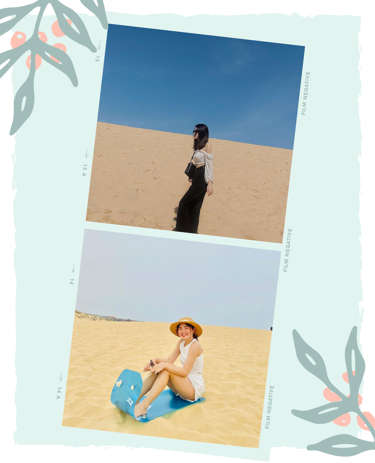 Những đồi cát trắng mịn trải dài như mê hoặc lấy cái nhìn của du khách. Cảm giác thảnh thơi giữa mây trời, luồn bàn chân xuống cát và cảm nhận sự nóng từ phía mặt trời tỏa xuống, hơi mát lạnh của cát mang lại thì mới thấy đã làm sao. Ngoài ra, khi bạn phóng tầm mắt ra phía xa còn có thể nhìn thấy biển. Đứng tại đồi cát Quang Phú, một trong những hoạt động không thể bỏ qua chính là đón hoàng hôn hay check - in lúc bình minh rất lãng mạn.