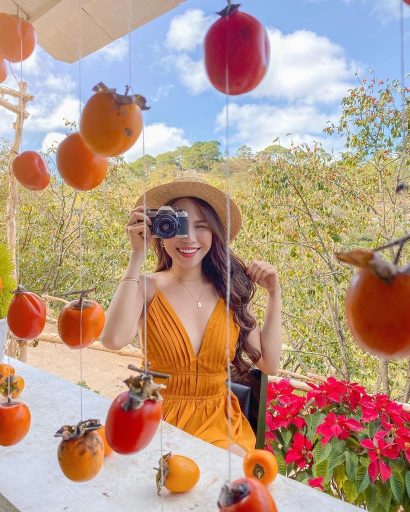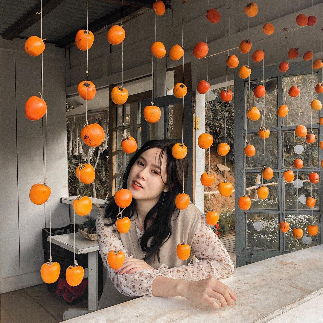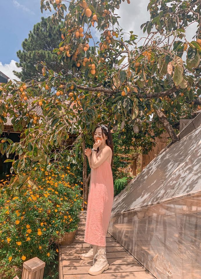 Những cây hồng ở quán thường rất to và trĩu quả. Quán mở cửa từ 07h sáng đến 21h30 tối, bạn có thể đến vào buổi sáng, trưa hoặc chiều tối. Mỗi khoảnh khắc ở đây đều mang vẻ đẹp riêng nên chúng ta đều không thể bỏ lỡ. Ngoài ra nếu thích, bạn có thể chọn ngồi tại bộ bàn ghế gỗ, tầm nhìn xuống khu nhà lồng trồng rau bên dưới. Nơi đây là điểm chụp hình lý tưởng của những ai đam mê sống ảo nữa đấy.