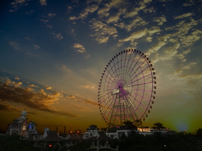 Vòng quay Mặt Trời – Sun Wheel là điểm vui chơi ở Đà Nẵng vô cùng thú vị dành cho các cặp đôi, đây là hạng mục được hoàn thiện đầu tiên của dự án Công viên Châu Á tại Đà Nẵng.