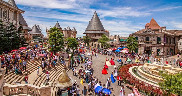 Được ví von như một "thị trấn châu Âu thu nhỏ", Bà Nà Hills mở ra cho du khách một không gian cổ kính nên thơ với những tòa lâu đài nguy nga tráng lệ, con phố phủ màu thời gian cũ kỹ, cửa hàng đậm hương cà phê ấm nồng hay những shop bán đồ lưu niệm bắt mắt.